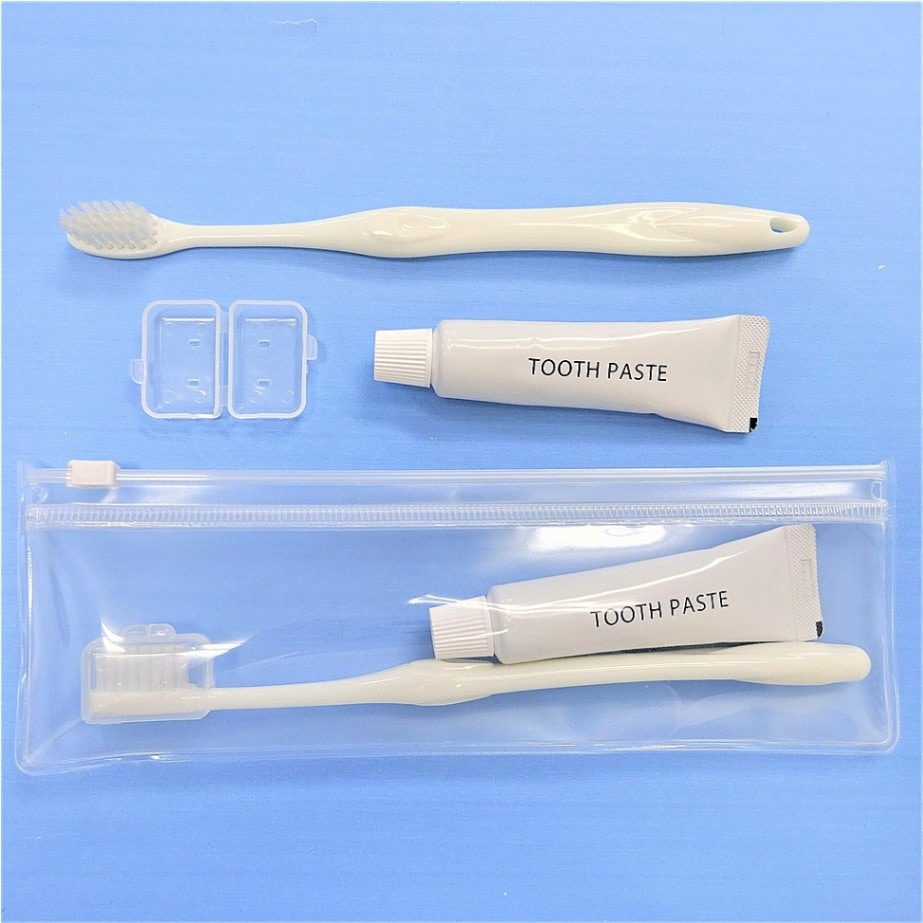 ハブラシセット(28L/PP樹脂/ナイロン平切り/キャップ付き/20gラミネートチューブ)
