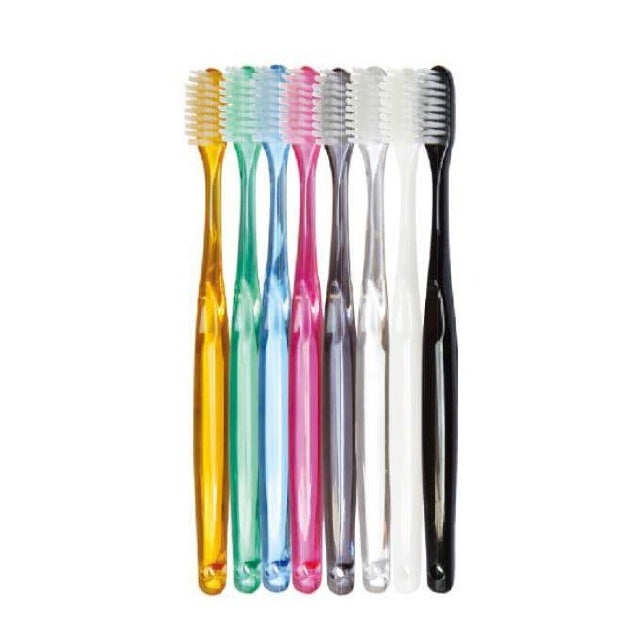 【単色】国産ハブラシセット<28穴-3gラミネート・先細>クリアハンドル(クリアマット袋入り)