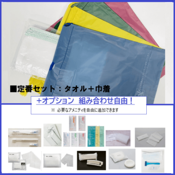 ★エコ使い捨てフェイスタオル+選べるセット(不織布巾着)*10セット