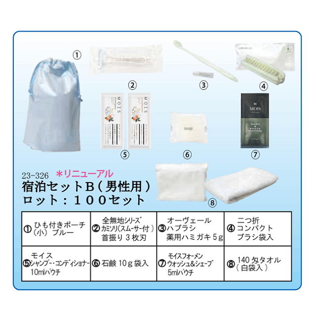 シャンプーセット3点(パウチ)+ボディタオル(不織布巾着入り)