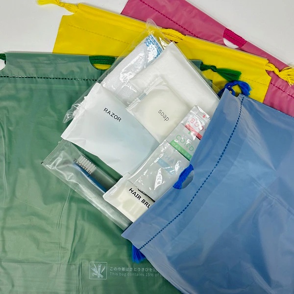 <ビニール巾着袋エコ>使い捨てフェイスタオル/バスタオル*120セット